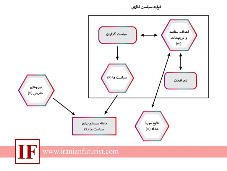 طراحی سیاستها (P)؛ که بر رفتار سیستم برای رسیدن به اهداف تأثیر میگذارد.